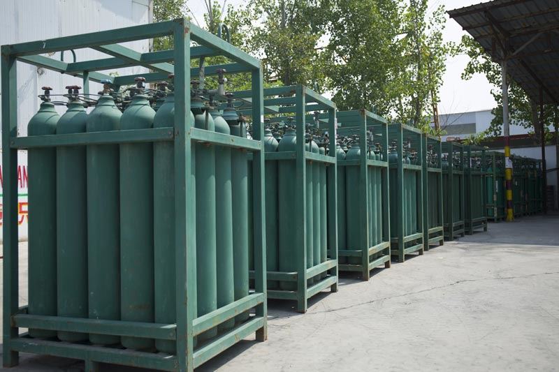 气瓶全部采用免拆卸使用新型安全瓶帽,每只气瓶粘贴有气瓶可追溯系统二维码,方便气瓶管理;气瓶充装前全部做抽真空处理,大力推广使用气瓶散装格吊装运输装卸气瓶,提高安全系数,降低工人劳动强度。